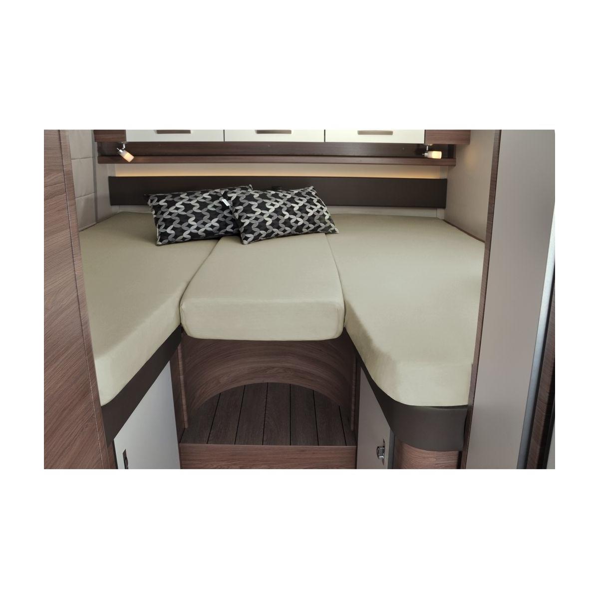 Das Problem ist bekannt – die Betten in Wohnmobilen oder Wohnwagen haben oft den räumlichen Verhältnissen angepasste Sonderformen bei den Matratzen, weshalb herkömmliche Spannbettlaken nicht oder zumindest nicht zufriedenstellend verwendet werden können. Abhilfe schaffen unsere neuen Spannbettlaken in den entsprechenden Sonderformen als 3-teiliges Set für Längsbetten im Wohnwagen oder Reisemobil. Dank der Form und des dehnbaren Materials – 97 % Baumwolle mit 3 % Elastan – ergibt sich immer eine ideale…