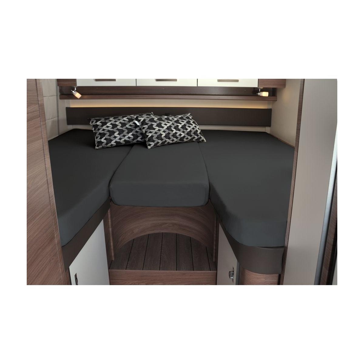 Das Problem ist bekannt – die Betten in Wohnmobilen oder Wohnwagen haben oft den räumlichen Verhältnissen angepasste Sonderformen bei den Matratzen, weshalb herkömmliche Spannbettlaken nicht oder zumindest nicht zufriedenstellend verwendet werden können. Abhilfe schaffen unsere neuen Spannbettlaken in den entsprechenden Sonderformen als 3-teiliges Set für Längsbetten im Wohnwagen oder Reisemobil. Dank der Form und des dehnbaren Materials – 97 % Baumwolle mit 3 % Elastan – ergibt sich immer eine ideale…