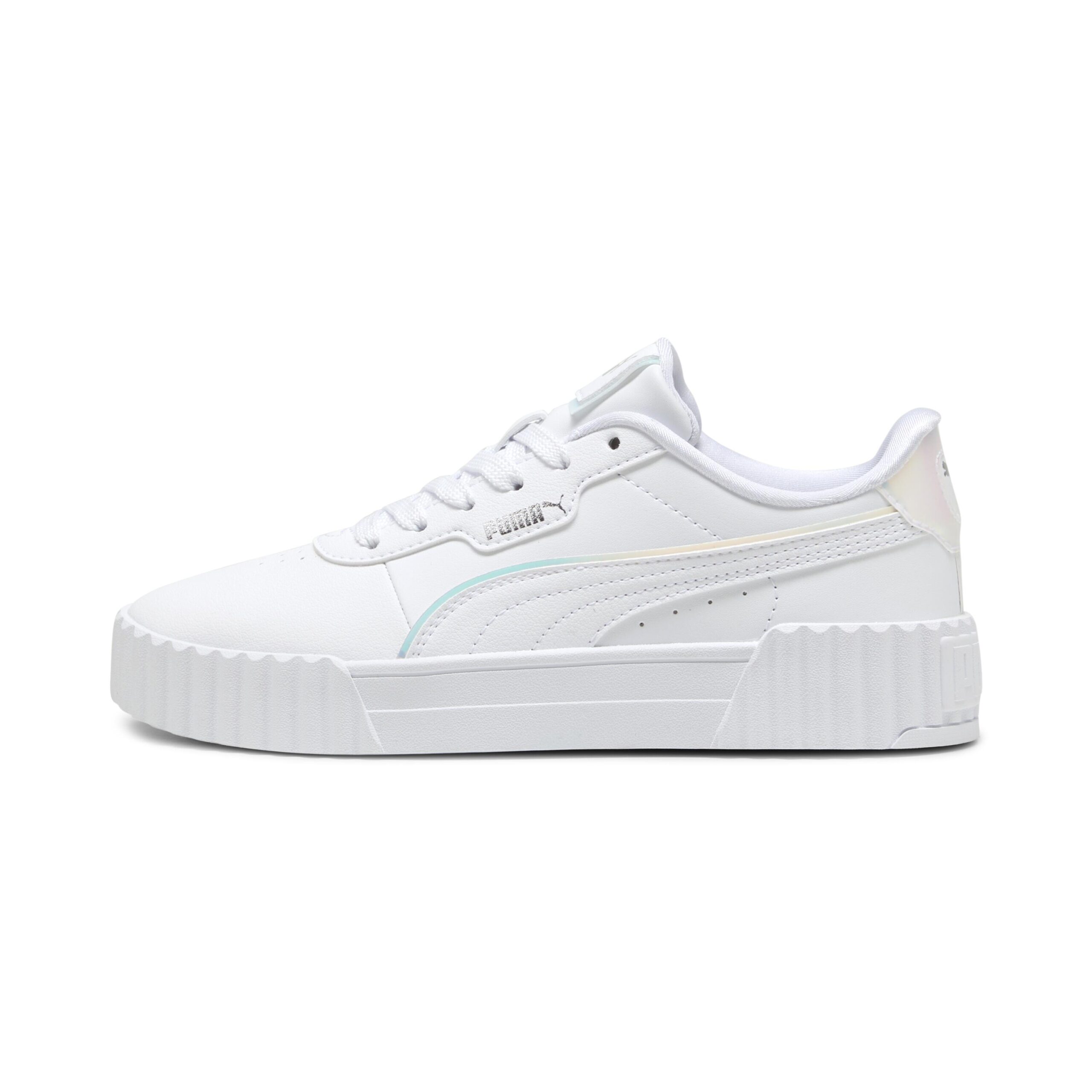Der PUMA Carina Jelly Heaven Schuh kombiniert ein Retro-Design mit frischen, farbenfrohen Pastelldetails. Dieses komfortable und stylische Paar ist perfekt für den Alltagslook junger Mädchen. Tragekomfort::Softfoam+ Sohle für mehr Komfort|Widerstandsfähigkeit::Schaft aus strapazierfähigem, recyceltem Kunstleder