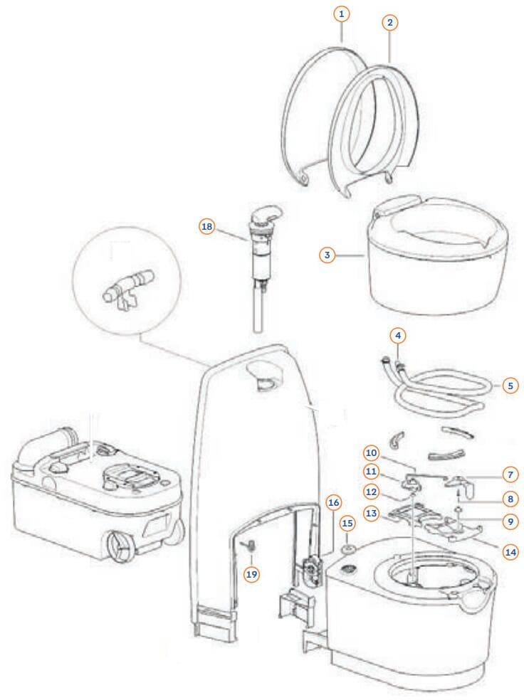 Spülknopf für C223S / C223CS. Thetford Ersatzteil-Nr. 200956 Abbildung Nr. 15