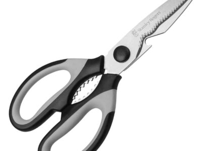 Mit der hochwertigen, lebensmittelechten Universalschere von Stanley Rogers gehen dir alle Schneidarbeiten in Küche und Haushalt leicht von der Hand. Die großartige Schere mit dem angenehmen Soft-Touch Griff schneidet z. B. Gemüse, Geflügel und sogar Hummer mühelos. Auch Papier und härtere Materialien wie Verpackungen und Karton werden von den extra scharfen und langlebigen Klingen aus Edelstahl zerschnitten. Die vielfältig einsetzbare Universalschere ist zusätzlich mit einem Kapselheber und einem…