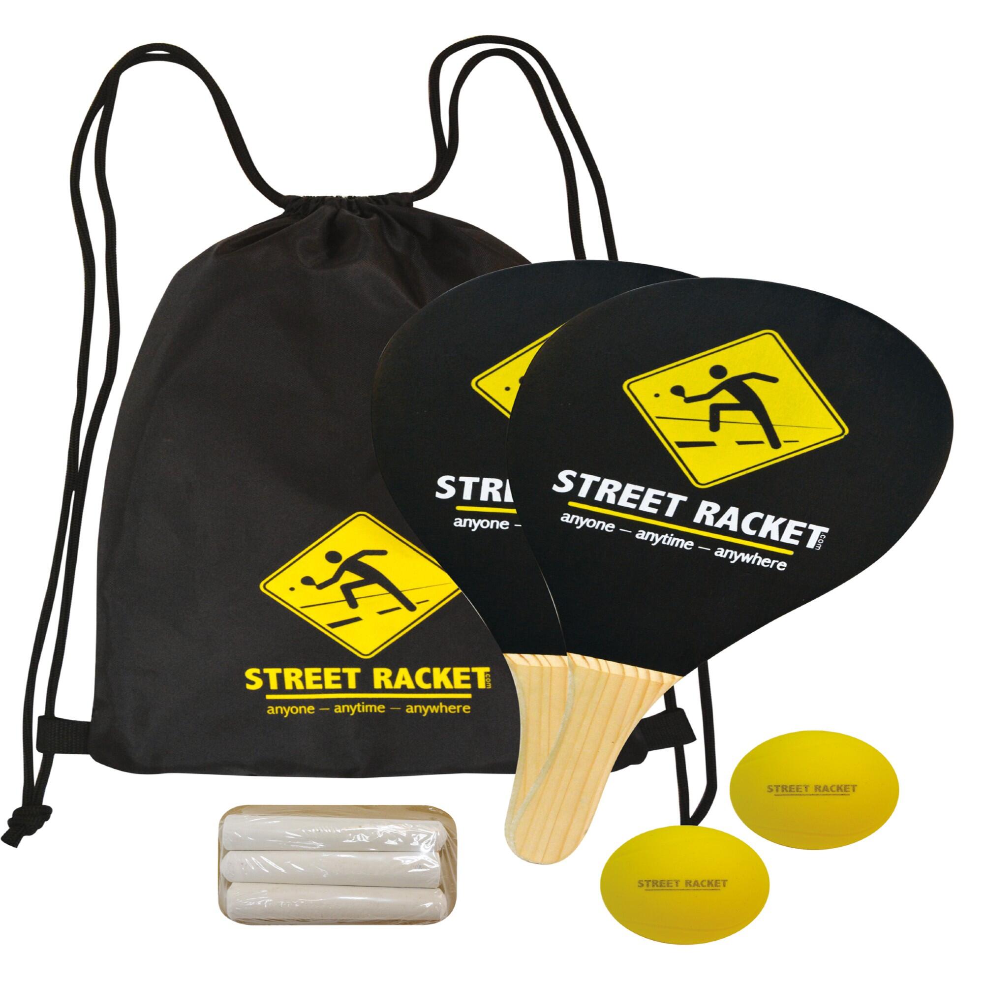 Street-Racket-Set (2 Holzschläger, 2 Soft-Bälle, 3 Stück Straßenkreide)