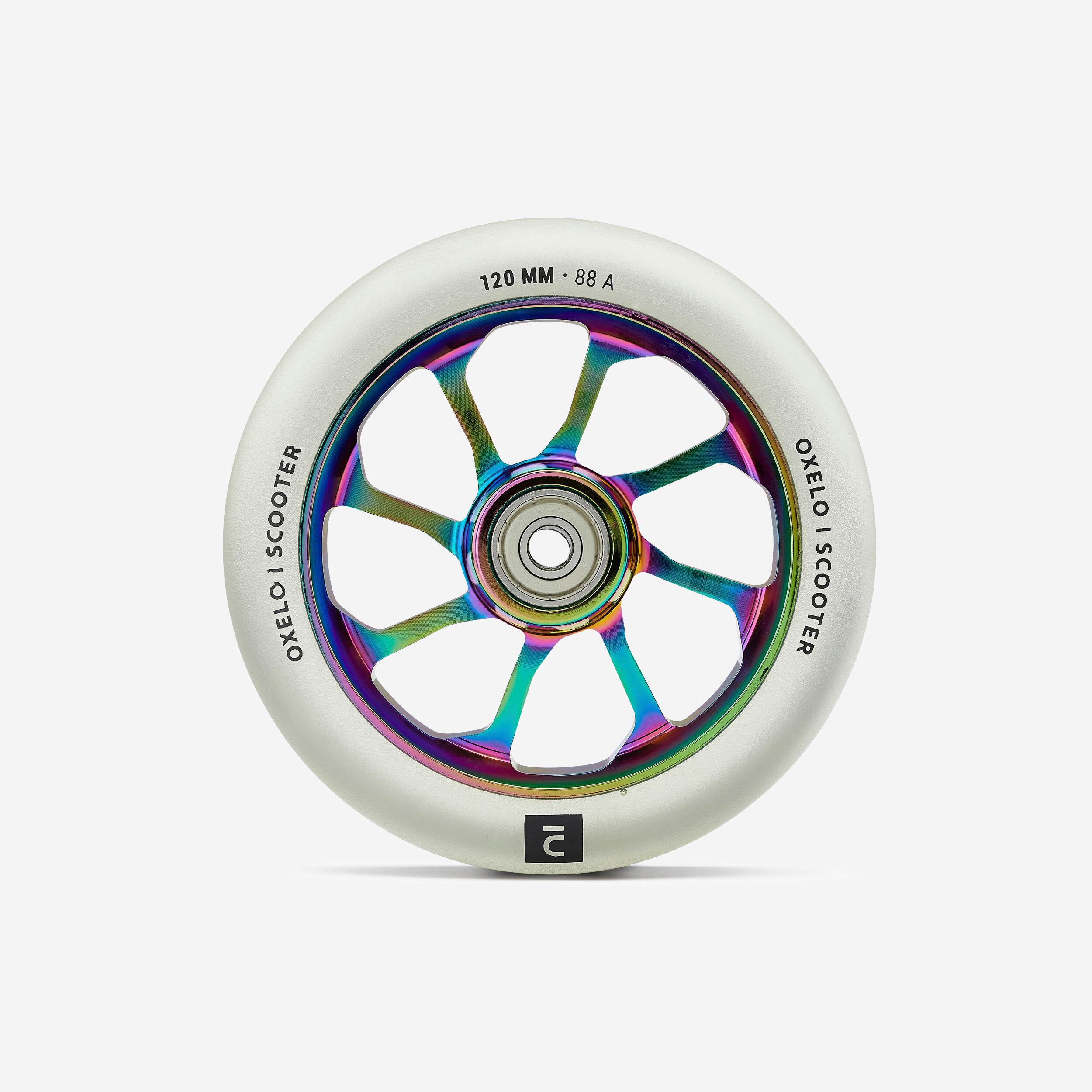 120 mm-Rolle für mehr Stabilität und Geschwindigkeit auf deinem Stunt-Scooter Gewicht::278 g pro Rolle|Gleitverhalten::Größerer Durchmesser für mehr Stabilität. Lauffläche aus High-Rebound-PU (88A). |Widerstandsfähigkeit::Besonders widerstandsfähig dank Nabe aus Aluminium 6061 T6 und ABEC-7 Kugellager|Kompatibilität::Kompatibel mit den Stunt-Scootern MF3.6 und MF540