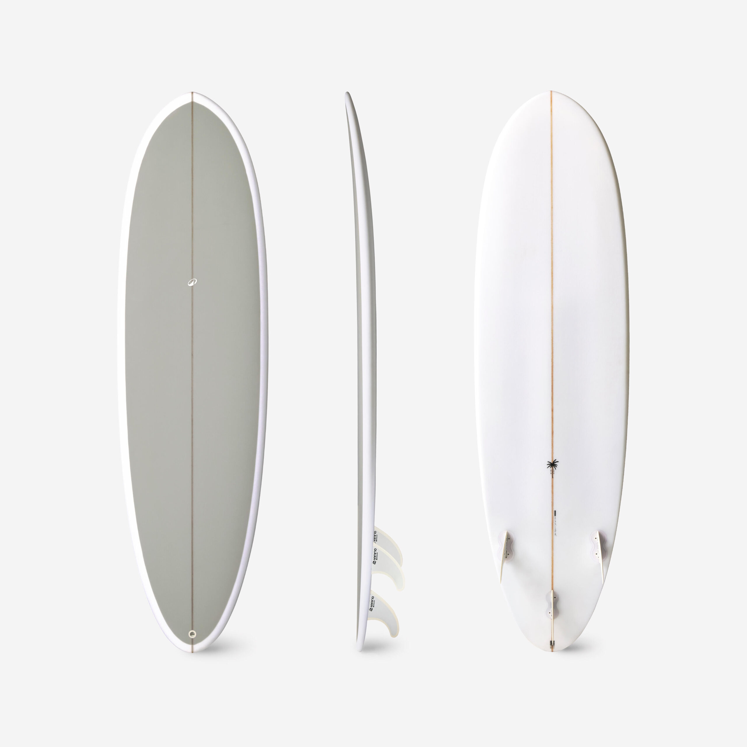 Bei diesem Modell wurden die Finnenboxen verstärkt. um die Stabilität zu erhöhen. Das Board wird mit 3 Finnen geliefert. Vorne breit. geringer Auftrieb. um leichter zu paddeln und aufzustehen. 40 l. |Tail hinten schmaler und Montage als Thruster (drei Finnen) |Gewicht des Boards: 3.5 kg ohne Finnen +/- 200 g