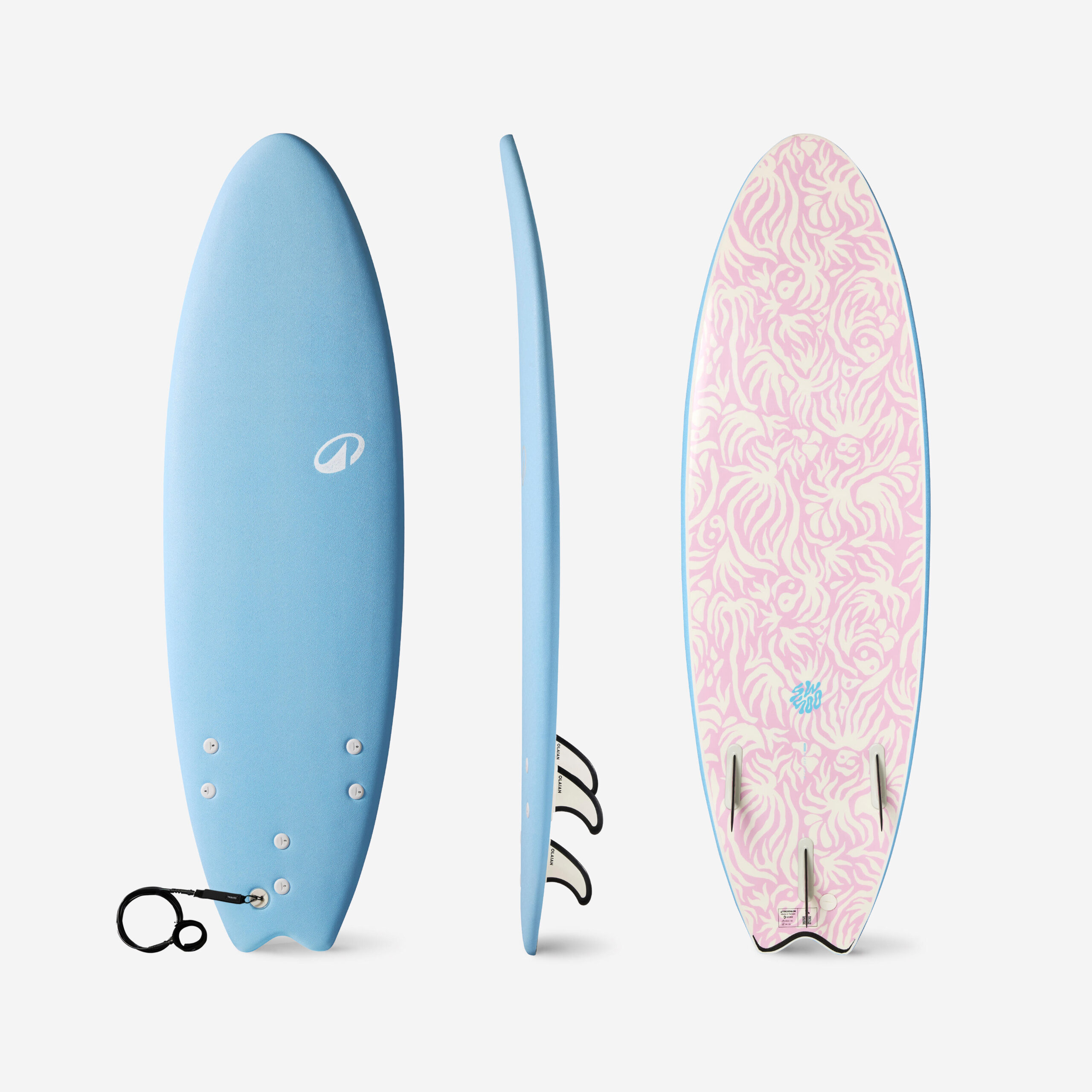 Design aus Schaumstoff für mehr Sicherheit beim Surfen an stark frequentierten Spots. Surfboard auch für Kinder geeignet, Einsteiger mit weniger als 40 kg. Inkl. 3 Finnen und Leash. Stabilität::Voluminöser Shape 49 l und 57 cm Breite|Leicht zu bedienen::Montage mit drei Finnen (Thruster) Swallow Tail |Einfache Handhabung::Drei Finnen zum Schrauben, inkl. Leash. Um nicht ausrutschen, Wachs auftragen.