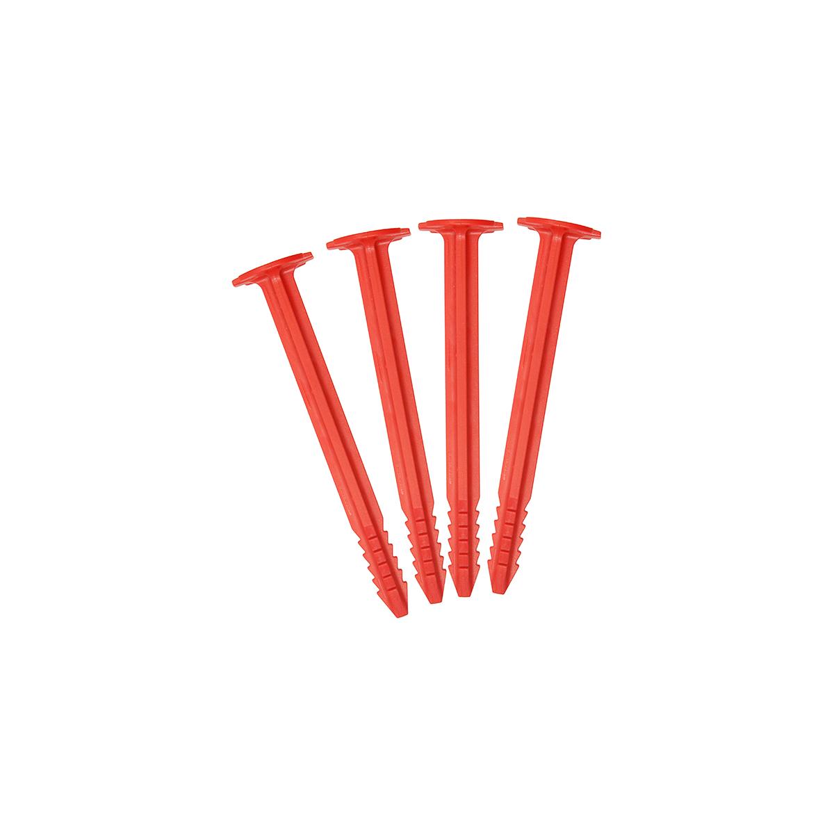 Diese Zeltnägel von SwissPiranha werden aus dem Hochleistungskunststoff PiranhaNT hergestellt und bieten gegenüber herkömmlichen Heringen deutliche Vorteile: Sie sind ultraleicht, stoßfest und supersicher. Ihre spitz zulaufende Form ermöglicht ein einfaches Einschlagen, während ein x-förmiger Querschnitt mit Sägezahnprofil für sicheren Halt in unterschiedlichsten Böden sorgt. Der flache Kopf komprimiert den Untergrund und maximiert die Haltekraft. Einkerbungen halten die Zeltleinen zuverlässig am Platz…