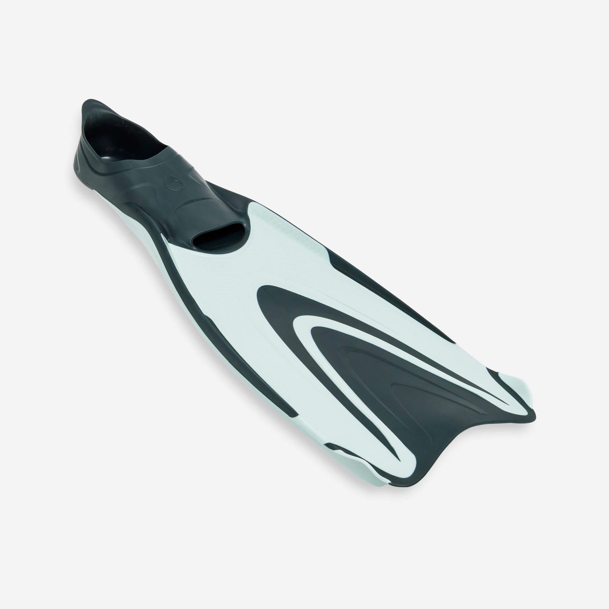 Bimaterial-Flossenblatt mit Löffeleffekt, für gute Führung der Flosse unter Wasser und flexiblen Flossenschlag. Mit ergonomischem Fußteil für mehr Komfort Leistung::Seitenrippen in variabler Stärke. Biegsames Flossenendblatt mit Löffel-Effekt|Einfach zu verschieben::FLEXIBLE Flosse, bequemer Flossenschlag|Kompakt::Länge des Flossenblatts in Gr. 42/43 = 66 cm|Stabilität::Mit Seitenflügel für mehr Stabilität, unabhängig vom Flossenschlag