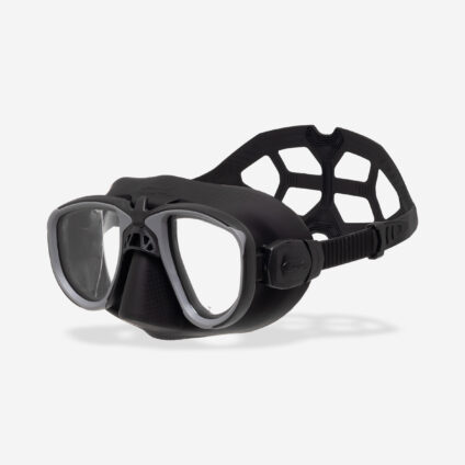 Vielseitige Maske. die ein großes Sichtfeld hat und ein geringes Volumen. Für Unterwasserjäger und Freitaucher aller Leistungsstufen. für Tauchgänge ins Meer oder Trainingseinheiten im Schwimmbad. Maske mit mittlerem Sichtfeld. |Innenvolumen von unseren Experten gemessen: 118 cm³
