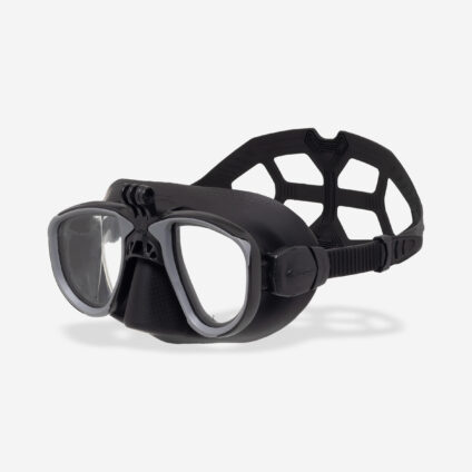 Vielseitige Maske. die ein großes Sichtfeld hat und ein geringes Volumen. Mit der Sportkamera-Halterung kannst du deine schönsten Tauchgänge festhalten. Maske mit mittlerem Sichtfeld. |Innenvolumen von unseren Experten gemessen: 118 cm³|Halterung. um seine Sportkamera (Action Camp) über den Augen zu befestigen.