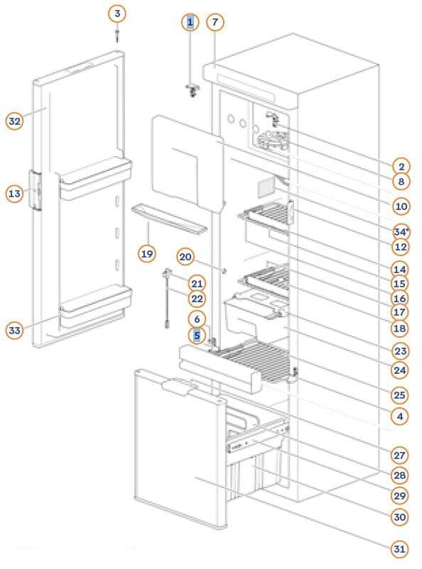 Teiler für Gemüsefach für N3141 / N4141 Thetford Ersatzteil Nr. 69112008 Abbildung Nr. 25 a