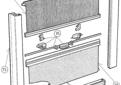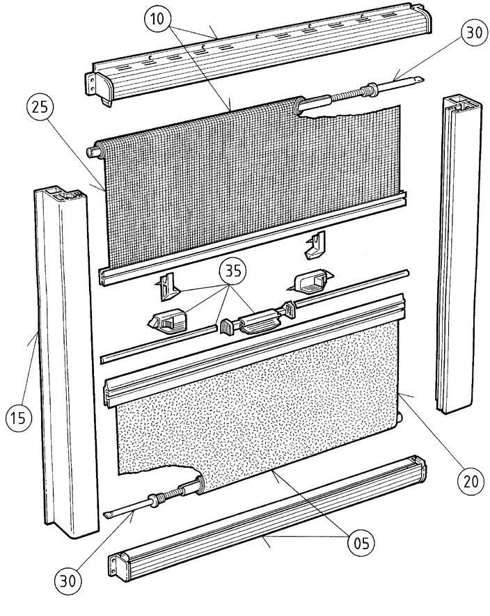 Teilesatz (Verschluss komplett, Einhandbedienungkompl., Schwalbenschwanzprofil) passend für: Mini-Doppelkassettenrollo u. Kombi-Kassettenrollo (38/1) Dometic Seitz Art.Nr.: :BG 1097 Farbe: grau Nr. 35 gem. Abbildung (Kombirollo) Inhalt: 1x Teilesatz grau
