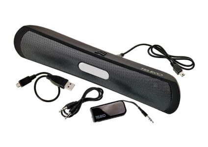 Das Kit umfasst einen kleinen Bluetooth Audio-Sender, der mit Leichtigkeit an jedes Teleco Fernsehgerät angebracht werden kann, und einem hochwertigen Bluetooth-Lautsprecher, der über eine drahtlose Verbindung in der Lage ist, das Audio-Niveau Ihres Teleco Fernsehers wiederzugeben und zu steigern. Der Bluetooth-Lautsprecher kann auch verwendet werden, um Musik von einem Smartphone abzuspielen.