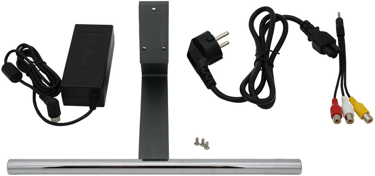 TenHaaft Zubehör-Kit für Oyster TV enthält ein 230-Volt-Netzteil und einen Standfuß für den Oyster TV 19 – 24