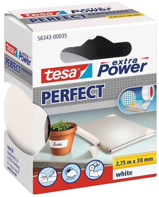 Tesa extra Power Perfect Gewebeband, 275cm, 38mm, weiß