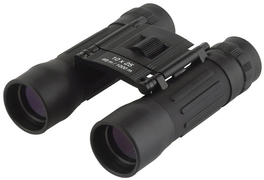 Zusammenklappbares Pocket-Fernglas mit Dachkant-Prismen. Vergrößerung: 10-fach, Objektivöffnung: 25 mm, Sichtweite: 98 m/1000 m. Inklusive Transporttasche. zusammenklappbar mit Dachkant-Prismen Technische Daten: Vergrößerung: 10-fach Objektivöffnung: 25 mm Maße offen: 113 x 105 x 35 mm Sichtweite: 98 m/1000 m Gewicht: ca. 184 g