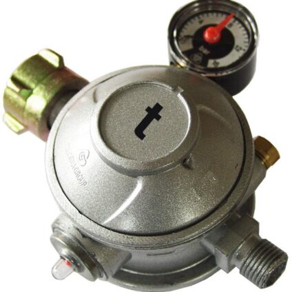2-stufiger Innenbereichregler für Haushaltsanlagen gem. TRF 5.2.7.2, mit thermischer Absperrung und Kontrollmanometer zur Dichtigkeitsprüfung. Gasdruck: 50mbar Durchfluss 1,5 kg/h Kleinflaschenanschluss x 1/4 Linksgewinde mit therm.Absperrung zur selbsttätigen Sperrung des Gasdurchflusses bei Temperaturen über 100 °C mit Kontrollmanometer zur Dichtheitsprüfung des Flaschen- anschlusses und der Leitungsanlage