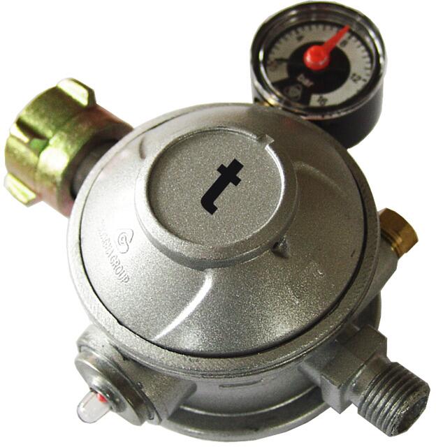 2-stufiger Innenbereichregler für Haushaltsanlagen gem. TRF 5.2.7.2, mit thermischer Absperrung und Kontrollmanometer zur Dichtigkeitsprüfung. Gasdruck: 50mbar Durchfluss 1,5 kg/h Kleinflaschenanschluss x 1/4 Linksgewinde mit therm.Absperrung zur selbsttätigen Sperrung des Gasdurchflusses bei Temperaturen über 100 °C mit Kontrollmanometer zur Dichtheitsprüfung des Flaschen- anschlusses und der Leitungsanlage