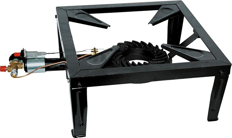 Profi Hocker-Kocher mit Zündsicherung und Piezozündung. Aus lackierten Stahl mit Gussiesen Brenner. Technische Daten: Gewicht: 5,88 kg Maße: ca. 40 x 40 x 20 cm Leistung: 7,5 kW Betriebsdruck: 50 mbar Schlauchanschluss: ¼ links Zündsicherung: ja Zündung: Piezo