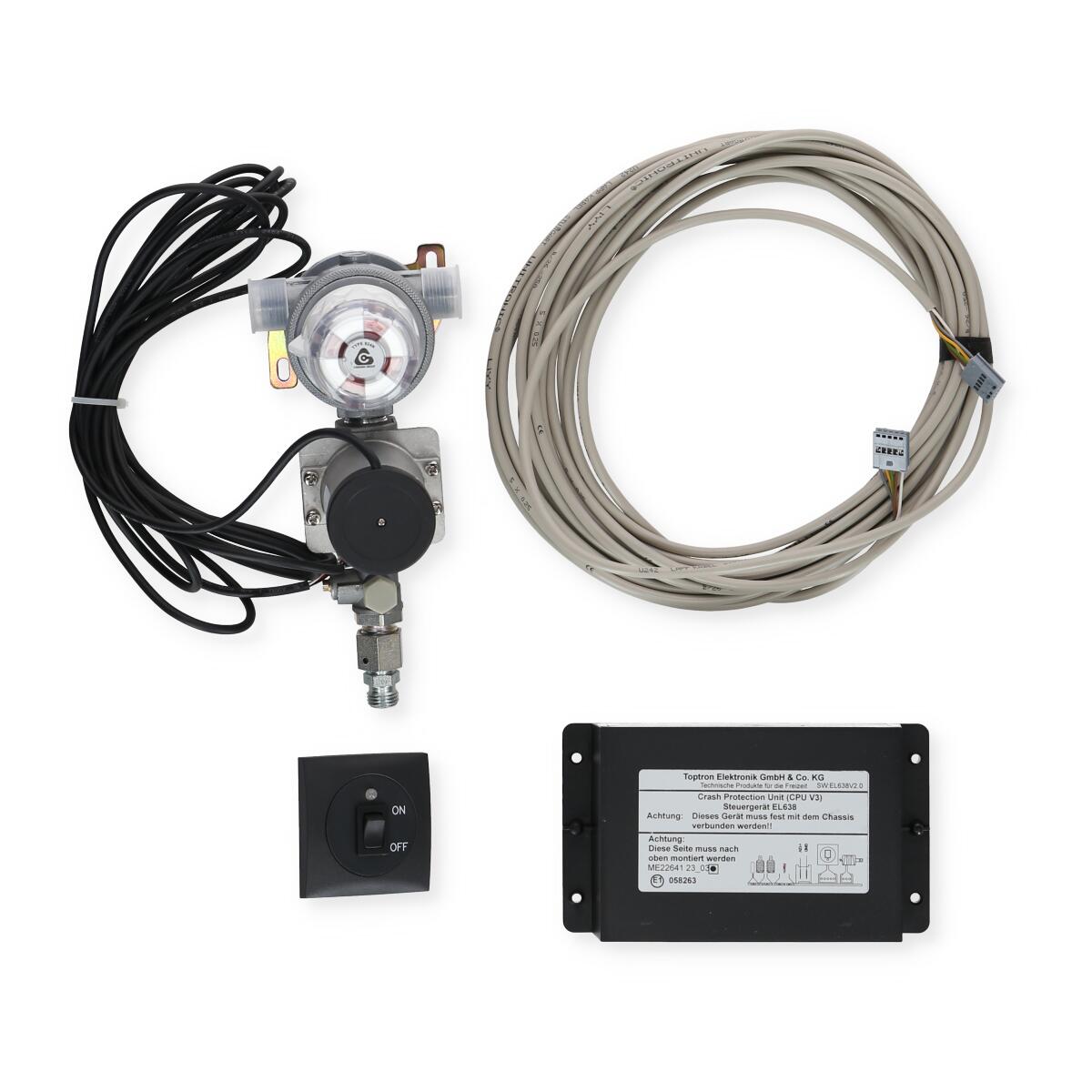 Die Multimatik CPU wechselt automatisch von leerer Betriebsflasche zu voller Reserveflasche. Über das Kontroll- und Schaltpanel im Innenraum des Fahrzeugs werden Sie über den Betriebs- zustand der Gasanlage informiert. Während der Fahrt Kühlschrank, Heizofen oder andere Verbraucher betreiben und immer auf der sicheren Seite sein. Die patentierte „Crash Protection Unit“ – CPU unterbricht im Ernstfall sofort die Gaszufuhr und verhindert so das Schlimmste. Mit Hochdruckschlauch und Schlauchbruchsicherung…