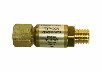 Die praktische Schlauchbruch-Sicherung, welche bei einem beschädigtem Gasschlauch die Gaszufuhr zuverlässig ab sperrt. Anschlussverschraubung R ¼ links, ÜM x R ¼ links verhindert Gasaustritt bei Beschädigung bzw. Lösen der Schlauchleitung und schließt den Gasdurchgang ab, sobald der Nenndurchfluss um 10 % überschritten wird Vorschrift bei Gasschläuchen über 150 cm! Technische Daten: Typ: 402A Regeldruck: 50 mbar Durchfluss pro Stunde: 1,5 kg/h Material: Messing / Stahl Farben: Messing Lieferumfang: 1x…