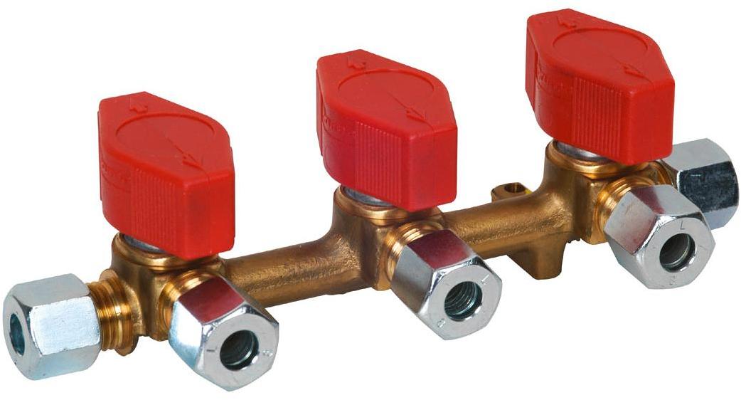 Mit separat absperrbaren Abgängen zur Festmontage. Abgänge: 3 Eingang: 10mm Ausgang: 8 mm