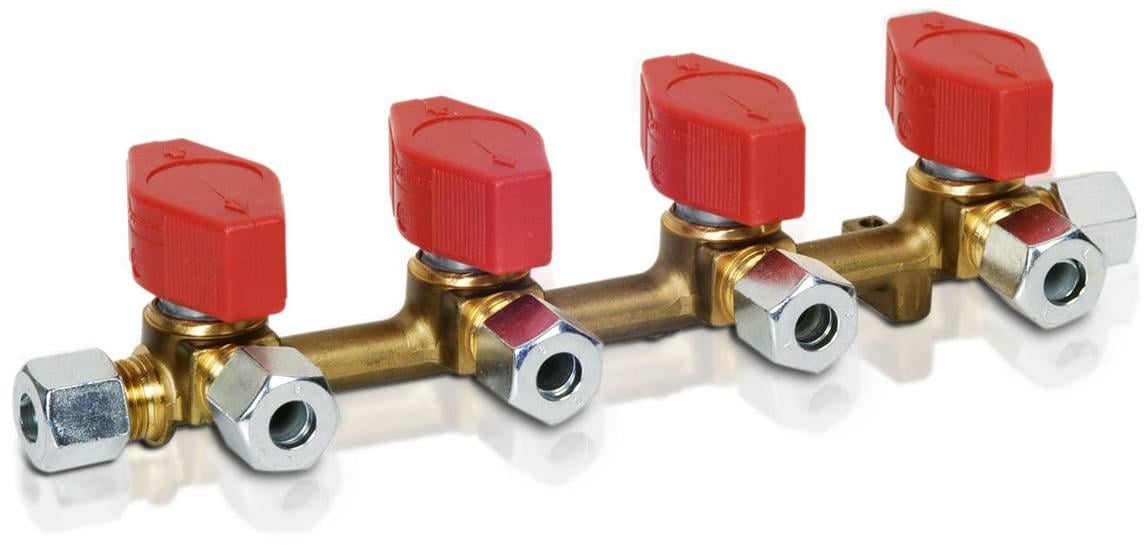 Mit separat absperrbaren Abgängen zur Festmontage Abgänge:4 Eingang: 10 mm Ausgang: 8 mm