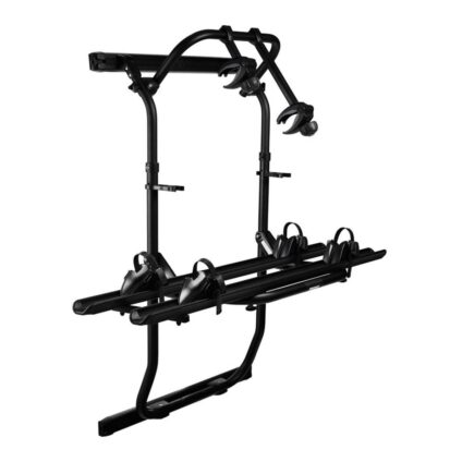 Für 2 Fahrräder, Tragfähigkeit 35 kg, maximale Belastung je Schiene 19 kg. Er wird ohne Bohren mittels geklebter Befestigungsklemmschiene auf die rechte Hecktüre montiert, die Tür kann geöffnet werden ohne dass die Räder abgenommen werden müssen. Der erhöhte Abstand von 20 cm zwischen den Schienen ermöglicht eine einfache und schnelle Befestigung der Fahrräder, zudem lässt sich die Fahrradplattform für zusätzlichen Komfort in 3 Höhenpositionen anbauen. Die Felgenhaltebänder mit Ratschenfunktion sichern…