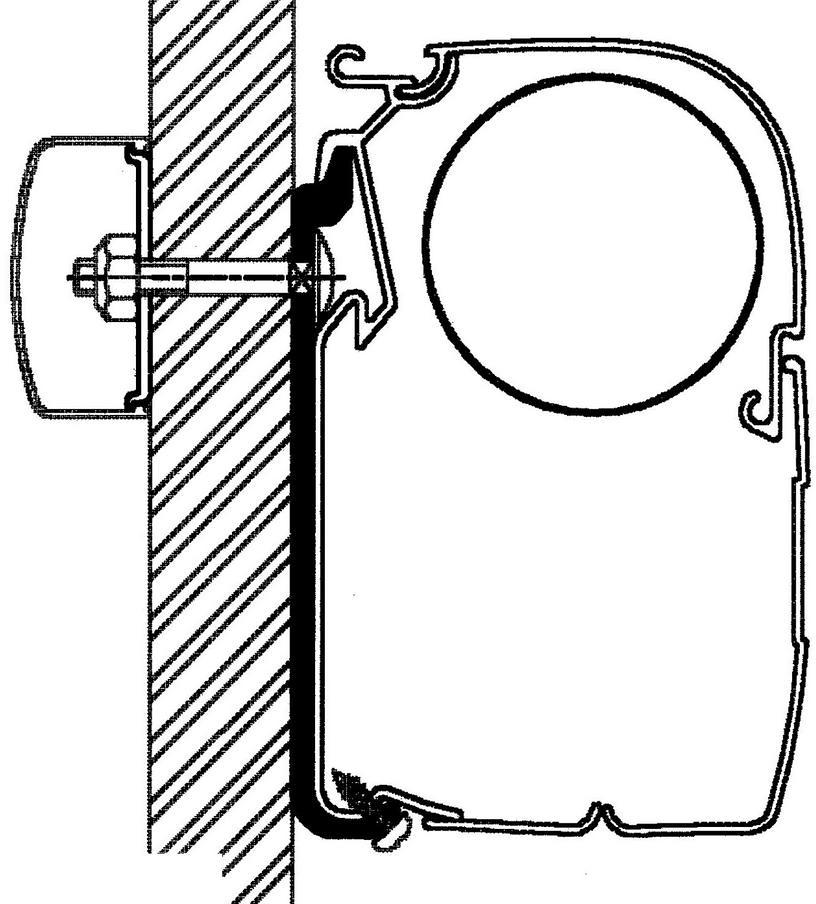 Markisenadapter zur Montage der Markise am Fahrzeug (Reisemobil, Caravan, Kastenwagen oder Camping-Bus) für Markisentypen: 5200 / 8000 / 4200 (sowie Vorgängermodelle 4900 / 5002 / 5003) (300 cm) für Fahrzeugmodell: Universelle Halterung für das Dach von Reisemobilen / Wohnwagen Inhalt: 1 Halterung á 300 cm Hersteller Art.Nr. 308040