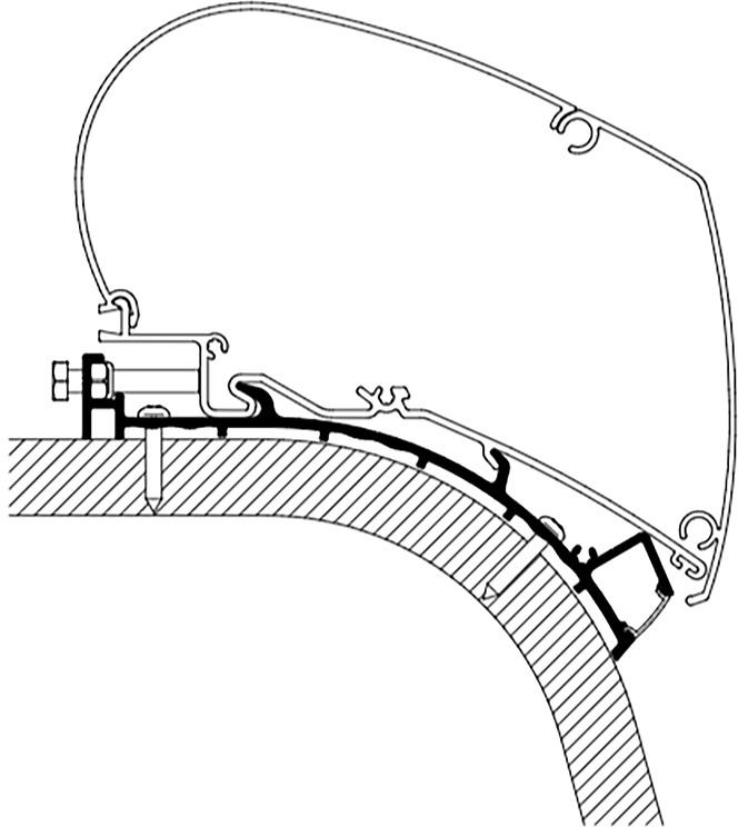 Markisenadapter zur Montage der Markise am Fahrzeug (Reisemobil, Caravan, Kastenwagen oder Camping-Bus) für Markisentyp: 9200 / 6300 (sowie Vorgängermodelle 6200 / 6002 / 6900) für Fahrzeugmodell: Eriba Touring 820 Ermöglicht die Montage eines LED Strips im Adapterkanal, 500cm Thule Art.Nr. 301682