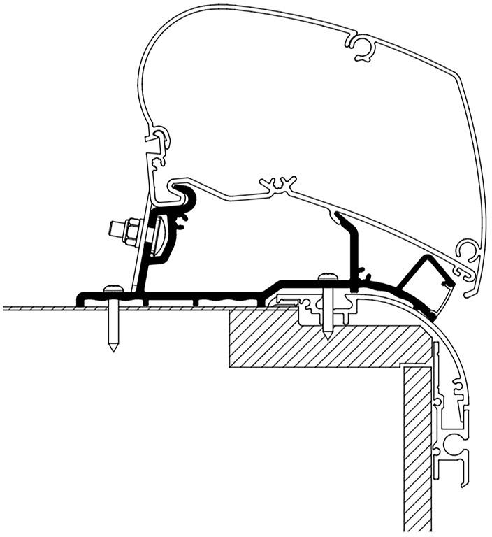 Markisenadapter zur Montage der Markise am Fahrzeug (Reisemobil, Caravan, Kastenwagen oder Camping-Bus) für Markisentyp: 9200 / 6300 (sowie Vorgängermodelle 6200 / 6002 / 6900) für Fahrzeugmodell: Roof Adapter Hymer Eriba Nova 2020 Inhalt: 1 Halterung à 425 cm Thule Art.Nr. 301906