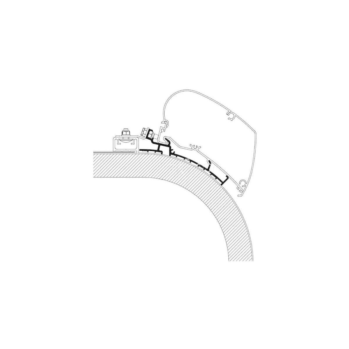 Markisenadapter zur Montage der Markise am Fahrzeug (Reisemobil, Caravan, Kastenwagen oder Camping-Bus) für Markisentyp: 9200 / 6300 (sowie Vorgängermodelle 6200 / 6002 / 6900) für Fahrzeugmodell: Rapido Distinction Inhalt: 1 Halterung à 500cm Thule Art.Nr. 301764