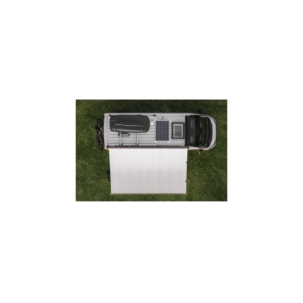 Flexible Dachträgerlösung für den Fiat Ducato abBaujahr 2006/07 mit H2 Dach, Schienenlänge 1,64 m, Traglast 100 kg. Es ist konzipiert für Campervans bei denen Dachaufbauten, wie zum Beispiel Dachhauben oder Kühlschrankentlüftung, die Montage einer durchgehenden Längsschiene verhindern. Die Befestigung erfolgt ohne Bohren an 4 Befestigungspunkten des Fahrzeugs und einer vollflächigen Verklebung, wobei das Dach im Bereich der Längsschienen von den Befestigungspunkten 10 cm nach innen frei von Hindernissen…