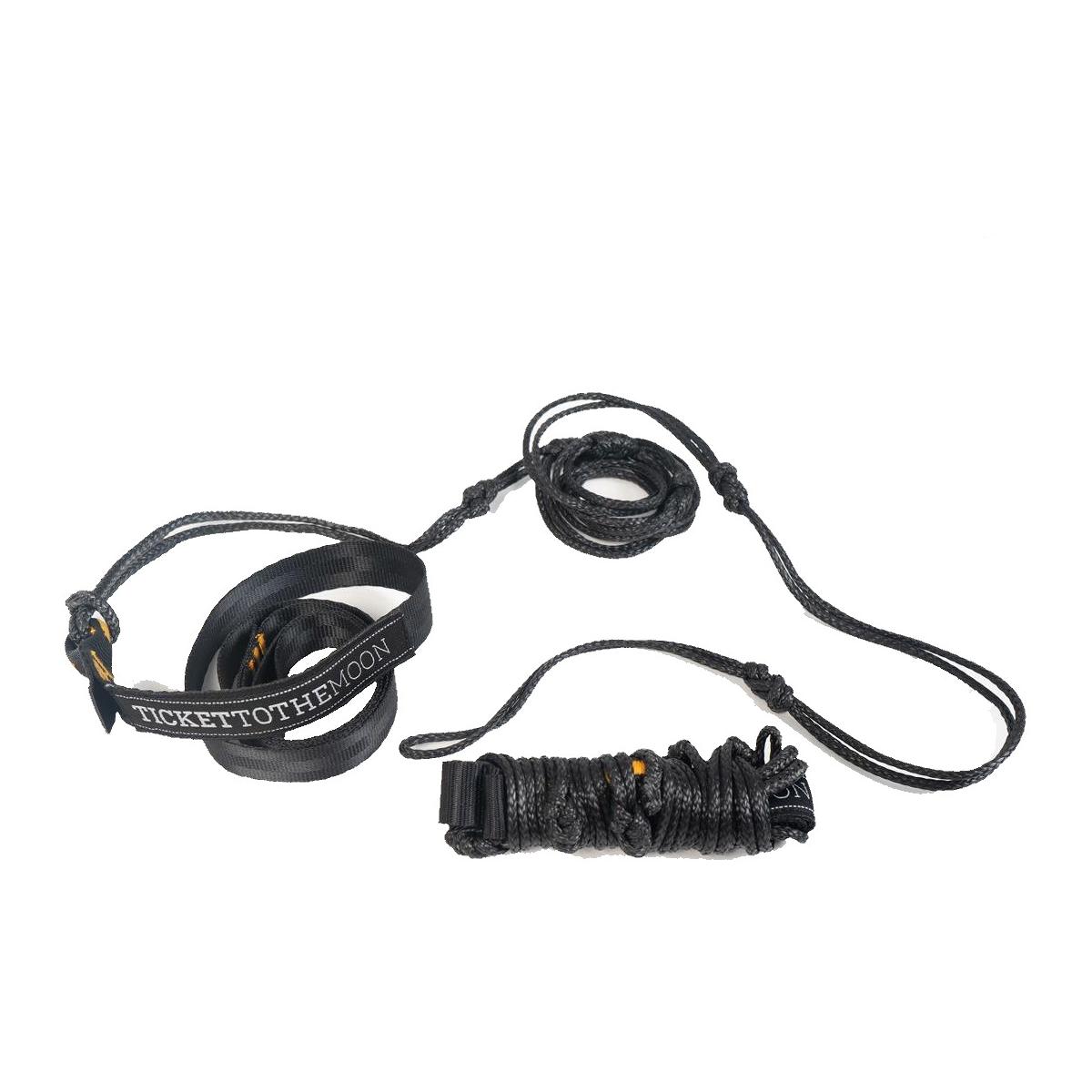 Baumfreundliche Aufhängevorrichtung ohne Knoten für die Hängematten von Ticket to the Moon. Baumfreundlich tortz hohem Halt Handgemachte Qualität Faire und nachhaltige Produktion Technische Details: Maße: 250 cm Gewicht: 95 g Bruchlast: 200 kg Lieferumfang: 2 Aufhängevorrichtungen Transportbeutel mit aufgedruckter Anleitung