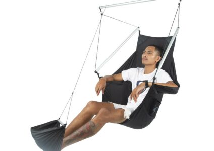 Vertikal hängender und tragbarer Hängestuhl. komfortabel schnell trocknend maschinenwaschbar bei 30°C verstellbar inkl. Fußstütze zertifiziert OEKO-TEX® Technische Daten: Material: Fallschirm-Nylon Taschenabmessungen: 98 cm x 15 cm Gewicht: 1700 g Max. Last: 120 kg Lieferumfang: 1x Moon Chair 1x Tragetasche 1x Fußstütze 1x Hängeseil 1 x Karabiner