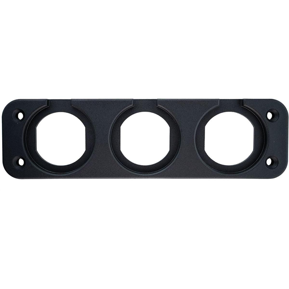 Einbaublende in 3-facher Ausführung für den Verbau von 1 1/8 Einbau-Messgeräten und Steckdosen. Kombiniere unsere 12/24 Volt Messgeräte und Steckdosen nach deinem eigenen Bedarf – vorgefertigte Panels waren gestern. Einbaublenden für 12/24V Systemeinsätze in 1 1/8 Technische Daten: Maße: 15 x 4 cm Gewicht: 0,03 kg Maße Einbau: 1 1/8 Ausführung: 3-fach
