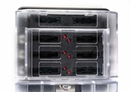 Sicherungshalter für 6 Stromkreise mit M4 Schraubanschlüssen. Für 12/24V Bordnetze bei Wohnmobil /Camper/ Boot geeignet. Original tigerexped Sicherungshalter in robuster Bauweise. Mit transparentem Deckel und Klebeetiketten zur Beschriftung der Stromkreise. Eine durchgebrannte Sicherung wird durch eine LED angezeigt. Zusammen mit der Beschriftung ermöglicht dies eine sofortige Diagnose ohne lästiges Suchen in meist beengten Räumen. Zusätzlich zu den normalen Steckplätzen, verfügt der Sicherungshalter…