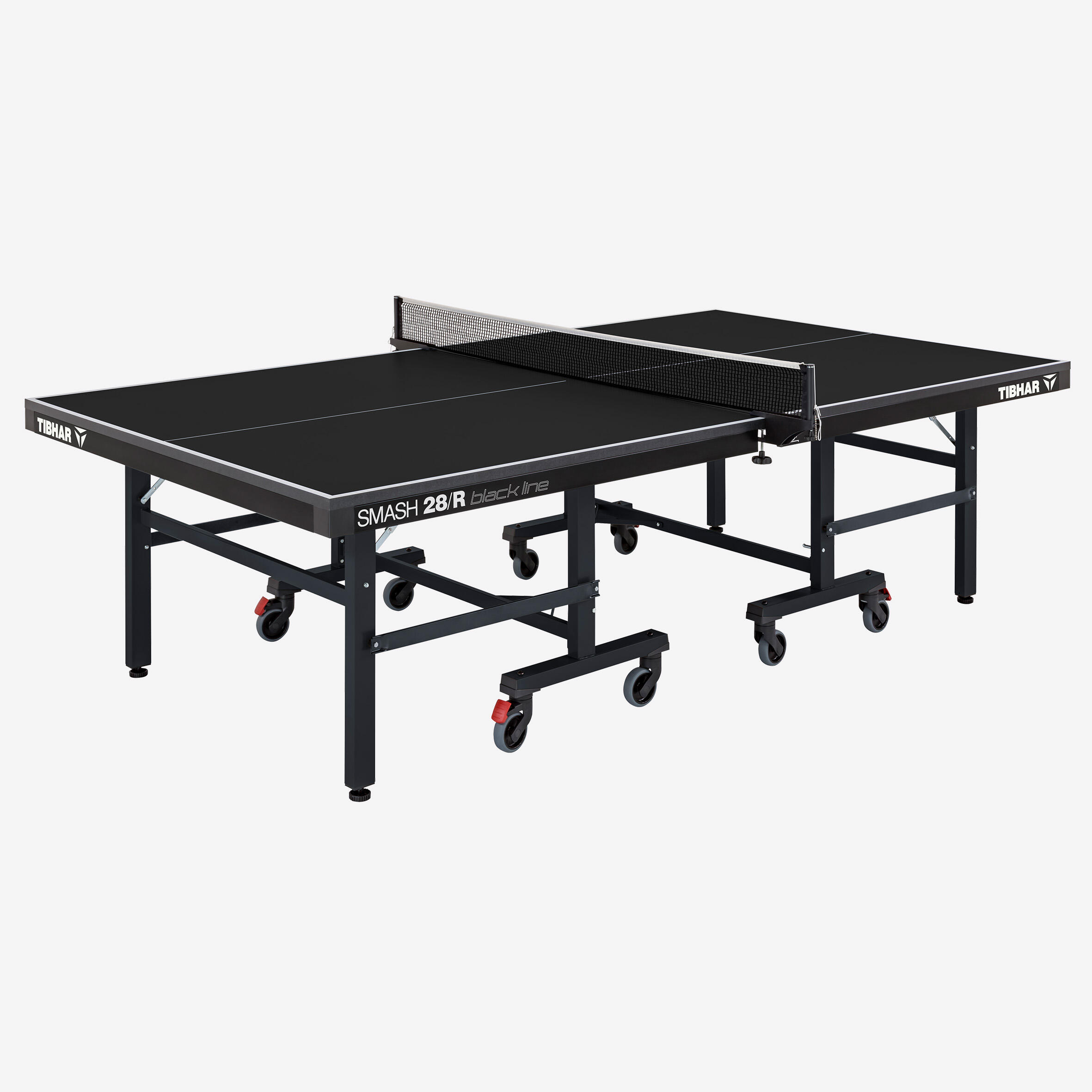 Rebound::28 mm starke Spanplatte mit 60 mm hohem Stahlrahmen. |Stabilität::Sehr stabil durch 4 Bremsen und 60 mm breite Füße. |Einfaches Öffnen/Schließen::Das Tibhar Sicherheitssystem ermöglicht einen leichten Auf- und Abbau. |Kompakt::Der kompakte Tisch benötigt nicht viel Stauraum. |Einfach zu verschieben::Dank der 8 Lenkrollen mit 100 mm Durchmesser ist er leicht zu transportieren.