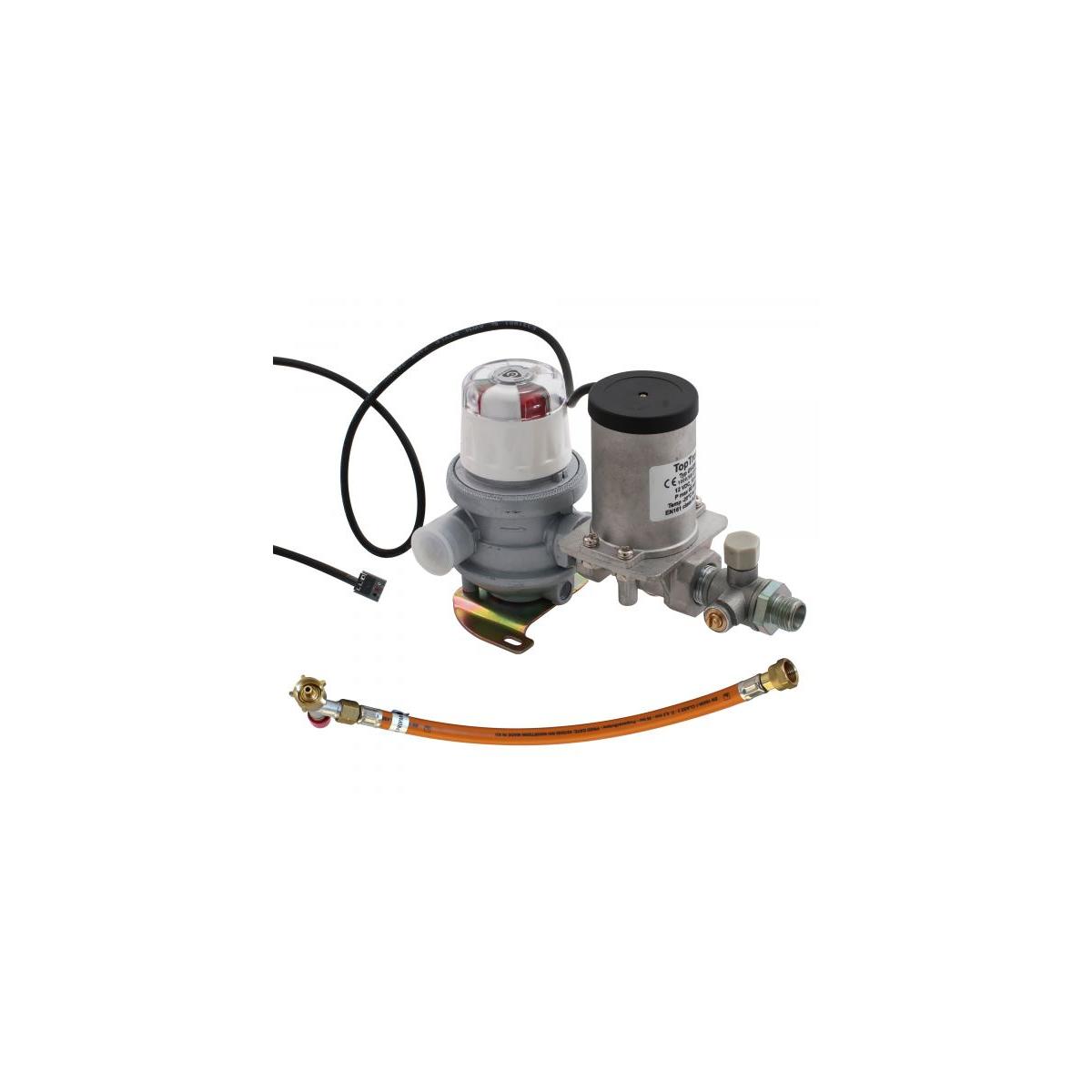 Set Toptron CPU Zweiflaschenarmatur ohne Elektronik inklusive 2 HD-Schläuche mit Schlauchbruchsicherung und Adapter 8/10 mm. Das Austauschset wurde konzipiert für bestehende CPU Zweiflaschenanlagen, deren Gasarmaturen und Schlauchleitungen aufgrund der Austauschpflicht in Freizeitfahrzeugen nach 10 Jahren ersetzt werden müssen. Das Set ist nicht für Neuinstallation geeignet! Technische Daten: Anschluss Gas: AG M20 x 1,5 x AG KLF Betriebsdruck: 30 mbar Breite: 15 cm Höhe: 26 cm Länge: 12 cm Nettogewicht:…