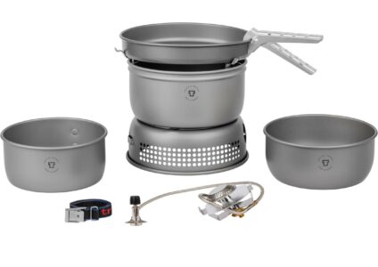 Die Serie 25 umfasst etwas größere Kocher, die für Gruppen von etwa 3-4 Personen geeignet sind. Sie sind ausgezeichnete Familienkocher mit geräumigen Pfannen, einer breiteren Bratpfanne und einem größeren Wasserkocher. Mit den Stützen in der angehobenen Position kann der Kocher mit großen Billies aus dem übrigen Trangia-Sortiment verwendet werden. für 3-4 Personen Technische Daten: Abmessungen: Ø220 mm x H105 mm. Brennstoff: Propan/Butangas Wirkung: 2100w Gesamtgewicht: 930g Lieferumfang: Kochtopf 1,5l…