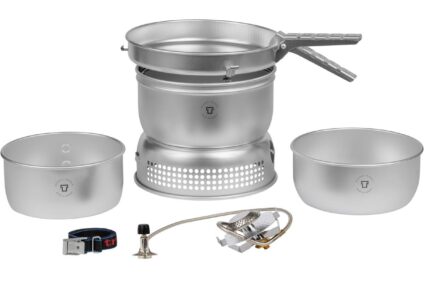Die Serie 25 umfasst etwas größere Kocher, die für Gruppen von etwa 3-4 Personen geeignet sind. Sie sind ausgezeichnete Familienkocher mit geräumigen Pfannen, einer breiteren Bratpfanne und einem größeren Wasserkocher. Mit den Stützen in der angehobenen Position kann der Kocher mit großen Billies aus dem übrigen Trangia-Sortiment verwendet werden. für 3-4 Personen Technische Daten: Abmessungen: Ø220 mm x H105 mm. Brennstoff: Propan/Butangas Wirkung: 2100w Gesamtgewicht: 930g Lieferumfang: Kochtopf 1,5l…