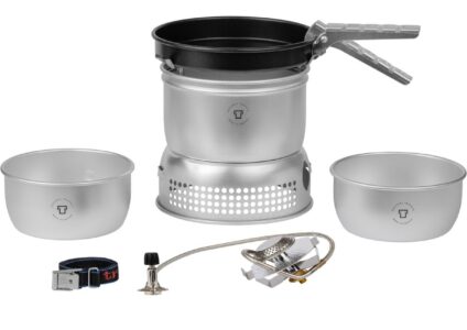 Die Serie 27 bietet gute Kocher für Alleinreisende oder zwei Personen. Die Pfannen sind kleiner und der Wasserkocher ist entsprechend dimensioniert. Ein kleiner, kompakter Kocher, der nur wenig Platz im Rucksack einnimmt. für Alleinreisende oder zwei Personen Technische Daten: Abmessungen: Ø185 mm x H100 mm Brennstoff: Propan/Butangas Wirkung: 2100w Gesamtgewicht: 810g Lieferumfang: Kochtopf 1l Innen UL Kochtopf 1l Außen UL Bratpfanne Ø180 mm Antihaftbeschichtung Windschutzscheiben oben & unten UL…