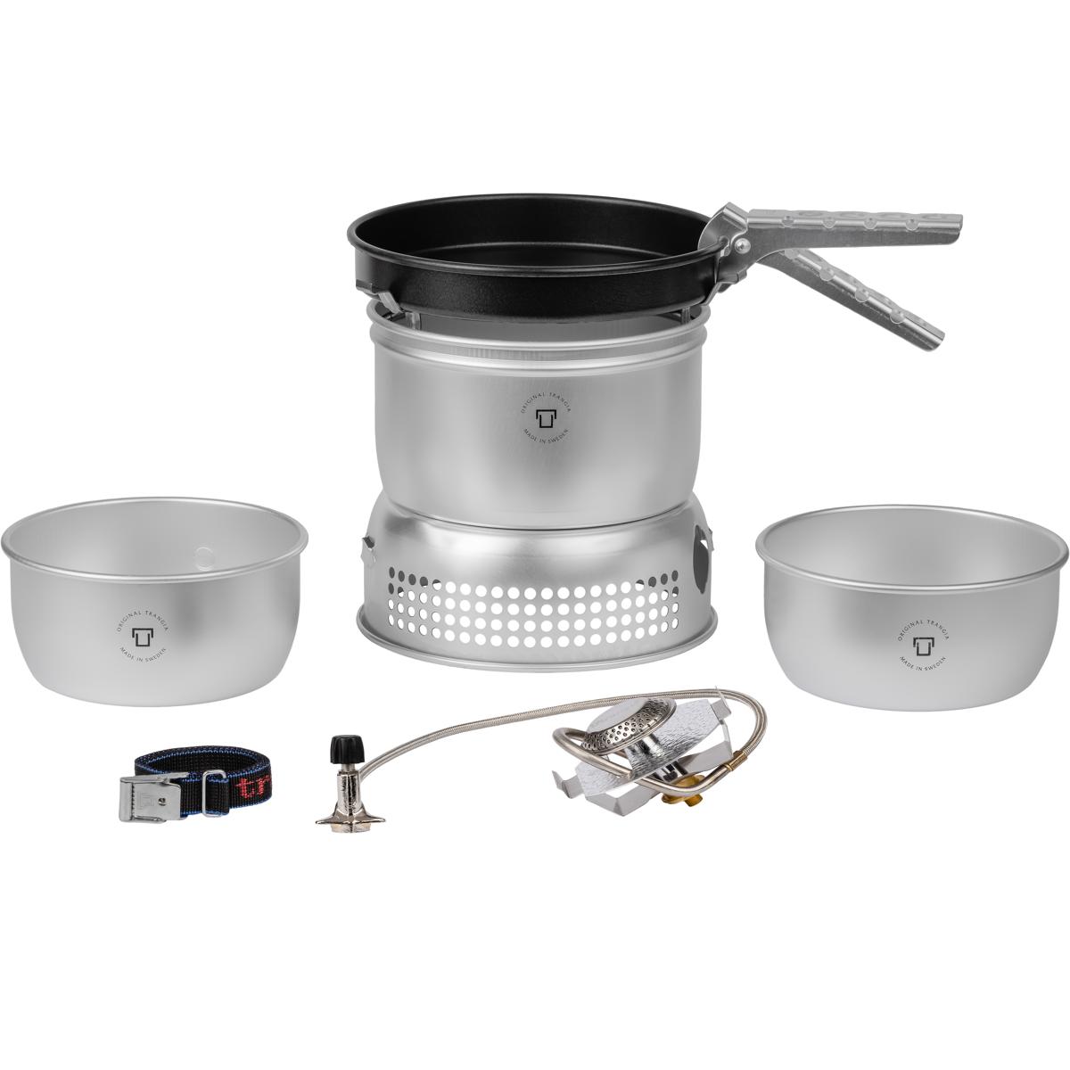Die Serie 27 bietet gute Kocher für Alleinreisende oder zwei Personen. Die Pfannen sind kleiner und der Wasserkocher ist entsprechend dimensioniert. Ein kleiner, kompakter Kocher, der nur wenig Platz im Rucksack einnimmt. für Alleinreisende oder zwei Personen Technische Daten: Abmessungen: Ø185 mm x H100 mm Brennstoff: Propan/Butangas Wirkung: 2100w Gesamtgewicht: 810g Lieferumfang: Kochtopf 1l Innen UL Kochtopf 1l Außen UL Bratpfanne Ø180 mm Antihaftbeschichtung Windschutzscheiben oben & unten UL…