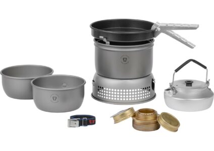 Die Serie 27 bietet gute Kocher für Alleinreisende oder zwei Personen. Die Pfannen sind kleiner und der Wasserkocher ist entsprechend dimensioniert. Ein kleiner, kompakter Kocher, der nur wenig Platz im Rucksack einnimmt. für Alleinreisende oder zwei Personen Technische Daten: Abmessungen: Ø185 mm x H100 mm Kraftstoff: Brennspiritus Leistung: 1000 W Gesamtgewicht: 860 g Material: hartanodisiertes Aluminium Lieferumfang: 2 Kochtopf 1L HA Bratpfanne Ø180 mm Antihaftbeschichtung Wasserkessel 0,6L…
