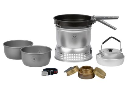 Die Serie 27 bietet gute Kocher für Alleinreisende oder zwei Personen. Die Pfannen sind kleiner und der Wasserkocher ist entsprechend dimensioniert. Ein kleiner, kompakter Kocher, der nur wenig Platz im Rucksack einnimmt. für Alleinreisende oder zwei Personen Technische Daten: Abmessungen: Ø185 mm x H100 mm Kraftstoff: Brennspiritus Leistung: 1000 W Gesamtgewicht: 860 g Material: ultraleichtes & hartanodisiertes Aluminium Lieferumfang: 2 Kochtopf 1L HA Bratpfanne Ø180 mm Antihaftbeschichtung…