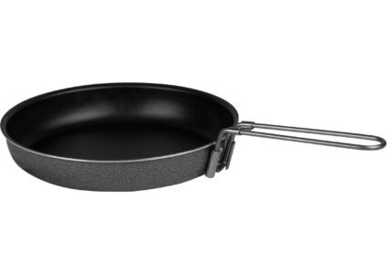 Bratpfanne Ø240 mm mit Antihaftbeschichtung und abnehmbarem Griff mit Ratschenhalterung. abnehmbarer Griff Technische Daten Material: Aluminium Gewicht: 390 g Abmessungen: Ø240 x 40 mm