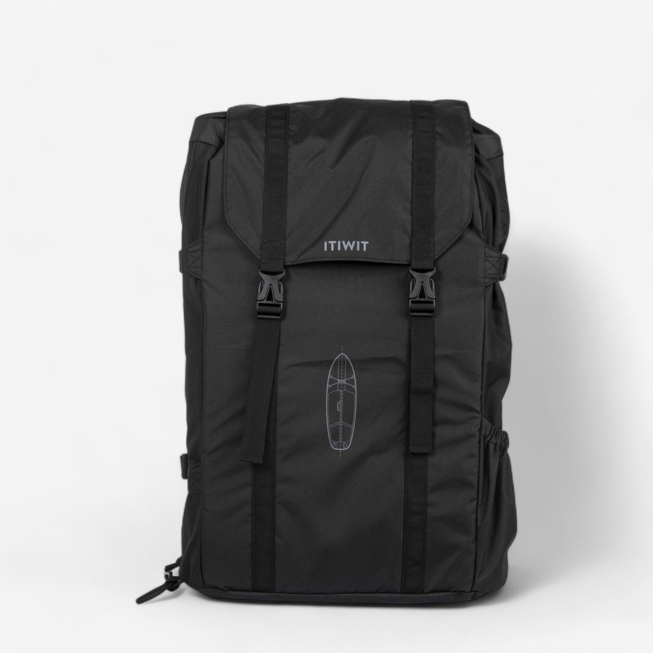 30-l-Rucksack für den Transport und die Aufbewahrung deines Stand Up Paddle Boards aufblasbar Compact Itiwit mit 8’/9’/S/M/L. Er ist identisch mit dem ursprünglich gelieferten Rucksack. Spezieller 30-l-Rucksack für den Transport der Itiwit Compact-Boards