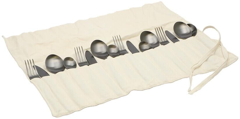 Erweitere dein Geschirrset mit dem 16-teiligen Altea Besteckset. Das Besteckset wird in einer Segeltuch-Bestecktasche geliefert. Dieser ist mit verschiedenen Fächern ausgestattet, so dass Ihre Messer, Gabeln und Löffel immer beisammen sind. Rollen Sie die Segeltuch-Bestecktasche einfach aus und decken Sie den Tisch für eine ganze Familie. Das Besteckset ist zudem spülmaschinenfest und leicht. Da das Besteck aus 100% Edelstahl besteht, hält es extra lange. inklusive Aufbewahrungstasche aus Segeltuch aus…