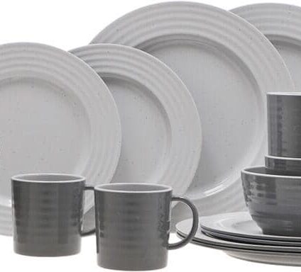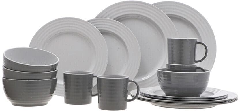 Das 16-teilige Geschirrset Rota sieht aus wie Keramik, ist aber aus stabilem Melamin gefertigt. So ist es äußerst robust, kratzfest und spülmaschinenfest. Die Rota Tassen, Schüsseln und Teller sind zweifarbig: Sie haben eine helle Innenseite und eine dunklere Außenseite. robust und kratzfest spülmaschinenfest Technische Daten: Gewicht: 2,5 kg Material: Melamin Lieferumfang: 4 Tassen 225 ml 4 Schalen ø 13 cm 4 Desserteller ø 23 cm 4 Essteller ø 28 cm