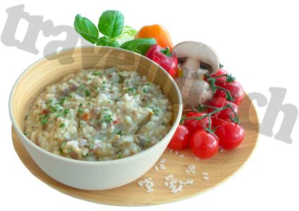 Travellunch Mahlzeiten sind aus guten, gefriergetrockneten und kontrollierten Zutaten hergestellt. Sie sind extrem leicht und unkompliziert zu transportieren, zwei Jahre ungekühlt haltbar und schnell zuzubereiten. 125 g reichen in etwa für eine Mahlzeit für eine Person. Perfekt und bewährt für Reise, Camping, Expedition oder als Notreserve. Zutaten: Reis 49 %, Rindfleisch 8 %, Palmfett, modifizierte Stärke, Maltodextrin, Sahnepulver, Butterpulver, Speisesalz, Champignons, Molkeneiweiß, Hefeextrakt,…