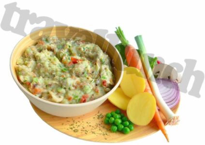 Travellunch Mahlzeiten sind aus guten, gefriergetrockneten und kontrollierten Zutaten hergestellt. Sie sind extrem leicht und unkompliziert zu transportieren, zwei Jahre ungekühlt haltbar und schnell zuzubereiten. 125 g reichen in etwa für eine Mahlzeit für eine Person. Perfekt und bewährt für Reise, Camping, Expedition oder als Notreserve. Zutaten: Kartoffeln 45 %, Rindfleisch 10 %, Magermilchpulver, Gemüse in veränderlichen Gewichtsanteilen (Karotten, Tomaten, Lauch, Erbsen), Röstzwiebeln mit Mehl 5,5…